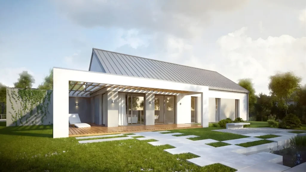Nowoczesny dom parterowy o powierzchni 137 m², zaprojektowany z myślą o komfortowym życiu 4–5 osobowej rodziny. Przemyślany układ funkcjonalny łączy wygodę codziennego użytkowania z estetyczną, ponadczasową architekturą.