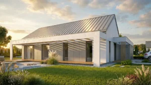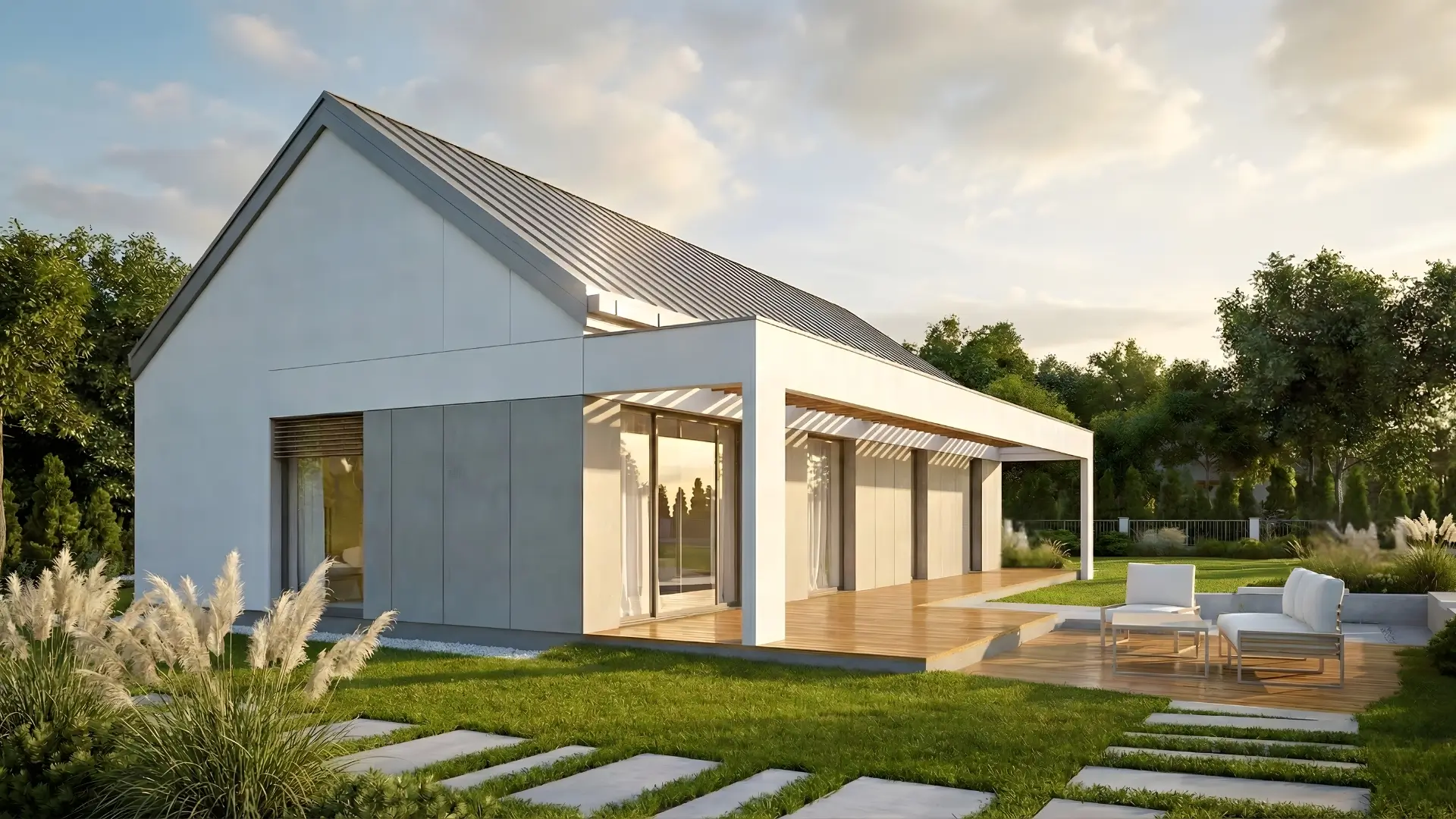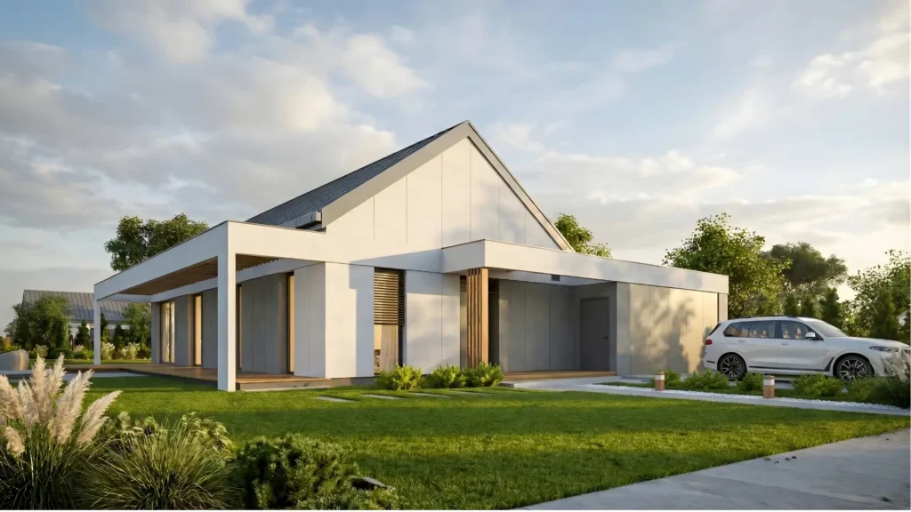 Nowoczesny, niskoenergetyczny projekt domu parterowego o powierzchni 102 m², zaprojektowany dla 2–4 osobowej rodziny. Łączy funkcjonalność, nowoczesny design i wysoką energooszczędność, gwarantując niższe rachunki i wygodę codziennego życia.