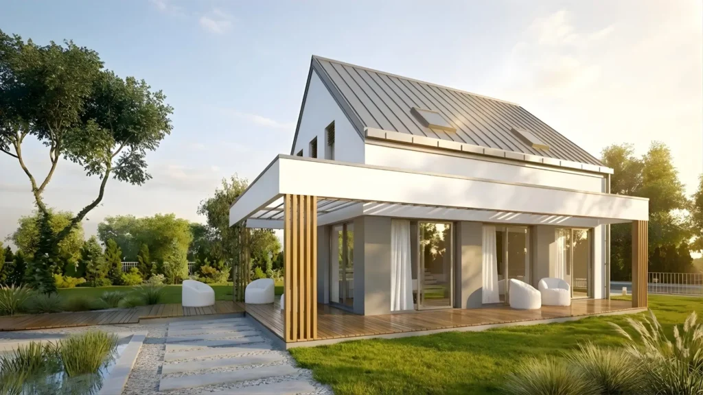 Ponadczasowa forma domu parterowego z poddaszem użytkowym o łącznej powierzchni 123 m², idealny dla 4 osobowej rodziny. Projekt łączy komfort, funkcjonalne wnętrza i minimalne koszty ogrzewania dzięki standardowi pasywnemu. Łączy nowoczesny design z najwyższą energooszczędnością, a przemyślany układ funkcjonalny gwarantuje komfort codziennego życia.