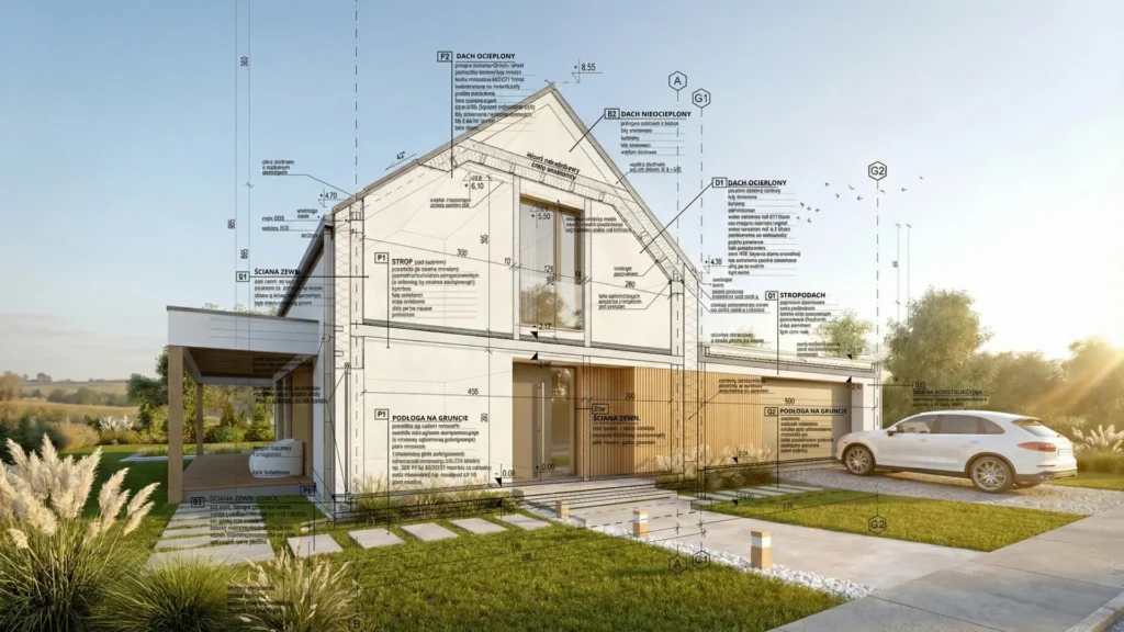 Opcjonalnie, jeśli posiadasz projekt domu energooszczędnego innego biura projektowego, ale chciałbyś poprawić jego efektywność energetyczną podczas budowy, to nasze opracowanie da Ci liczne know-how i wskazania, które wyeliminują niepotrzebne i niekontrolowane straty ciepła.